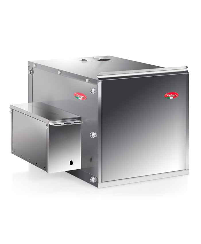 Θάλαμος καπνιστών για σαλάμι, κασέρι, τυρί, και οποιoδήποτε κρέας ή ψάρι. • Θάλαμος με συρταρωτή πόρτα. • Ρυθμιζόμενη βαλβίδα. • 1 ράφι. • 5 τσιγγέλια. • Δίσκος για το τσίπς. • Full INOX.