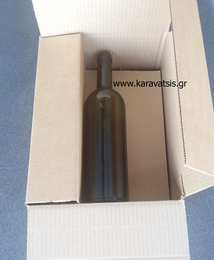 Κουτί μεταφοράς 6 φιαλών οριζόντιας θέσης με ανα-διπλούμενες άκρες και μια ενδιάμεση κυψέλη.
